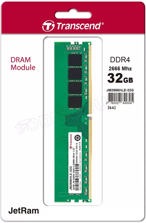 Barrette mémoire 32Go DIMM DDR4 Transcend JetRam 2666Mhz (Vert)