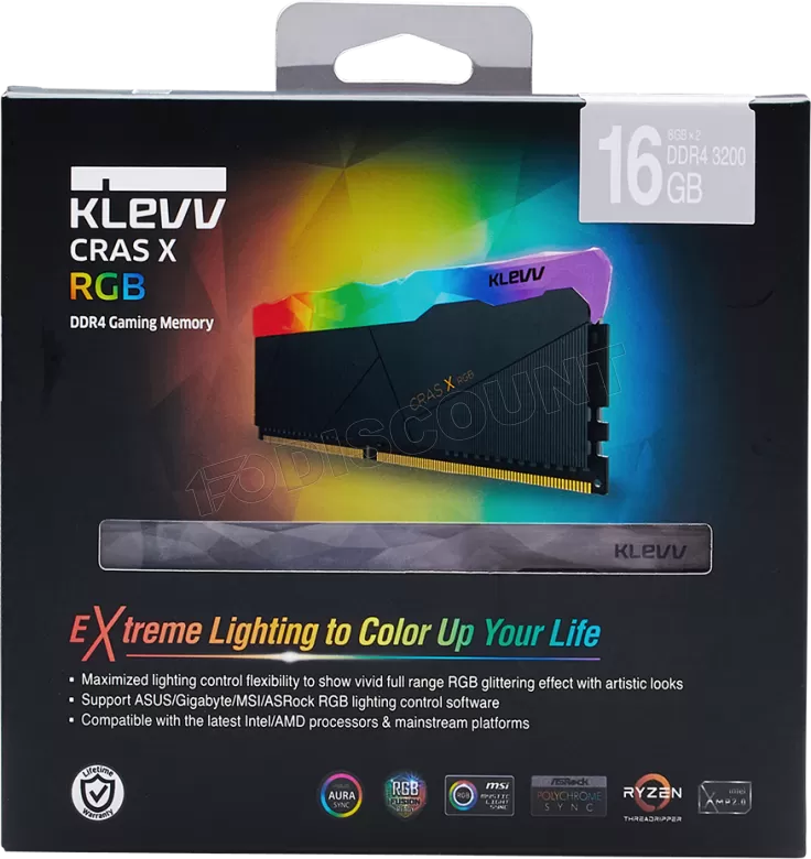 Kit Barrettes mémoire 16Go (2x8Go) DIMM DDR4 Klevv Cras X RGB 3600Mhz (Noir)