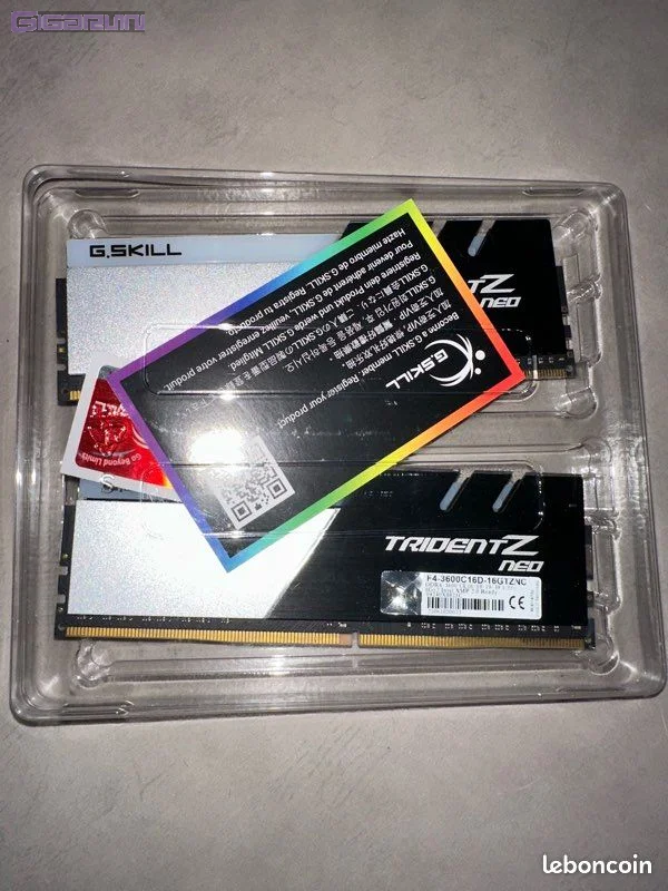 Kit Barrettes mémoire 32Go (2x16Go) DIMM DDR4 G.Skill Trident Z 3200Mhz (Gris et Blanc)